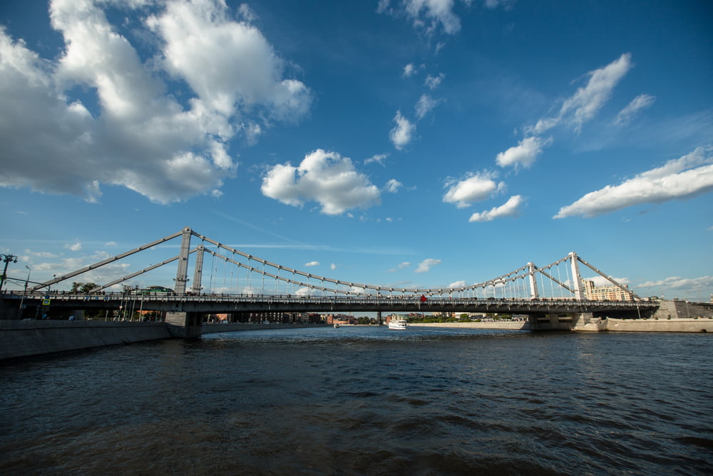 - Крымский – Уникальный висячий мост через Москву-реку, построенный в 1938 году. Его стальные конструкции делают его одним из самых узнаваемых символов Москвы. Мост соединяет Крымскую набережную с Фрунзенской набережной. По вечерам он красиво подсвечивается, создавая романтическую атмосферу для прогулок. Здесь часто проводят фестивали и выставки, что делает его культурным центром набережной.