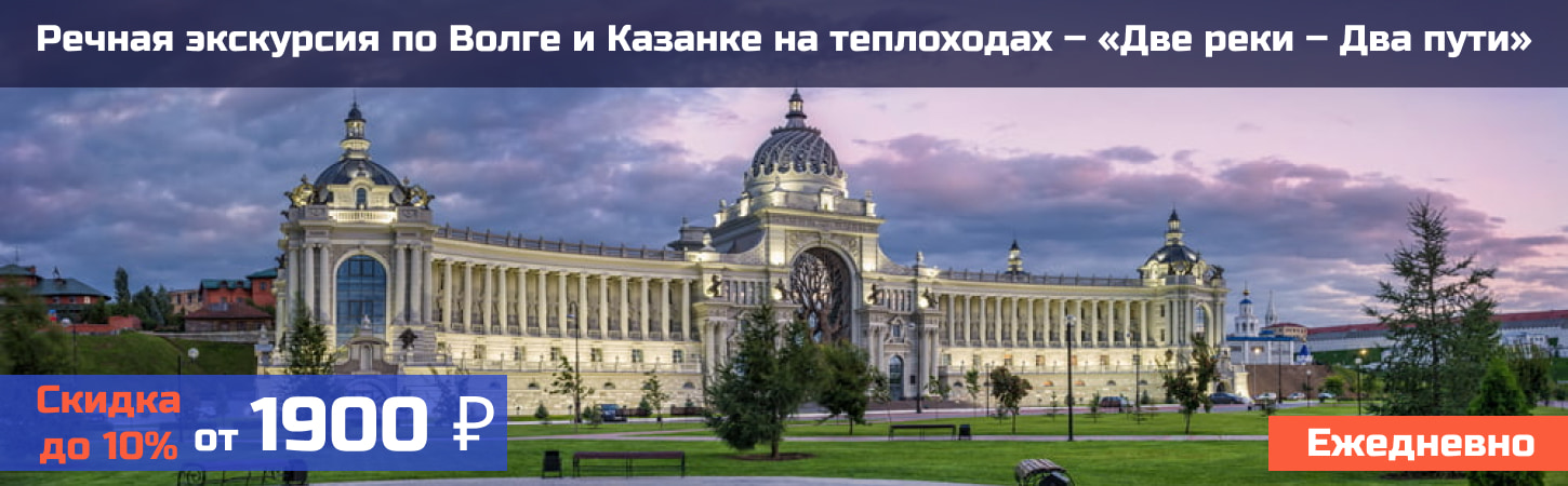 Речная прогулка на теплоходе по Волге и Казанке – это прекрасная возможность посмотреть окрестности Казани и насладиться приятной атмосферой на борту теплохода. Экскурсия на теплоходе с прекрасными видами на акваторию Волги, вкусным завтраком, ужином от шеф-повара или вечерний круиз с живой музыкой и дискотекой не оставят равнодушным ни одного путешественника.