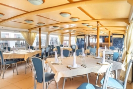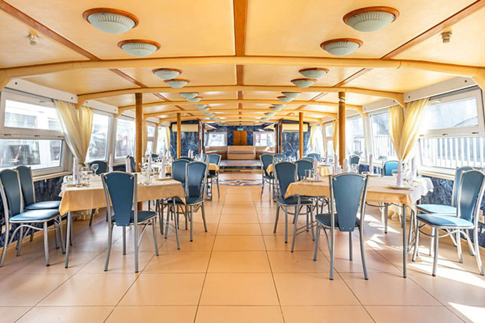 На борту создана комфортная атмосфера. К вашим услугам кафе и бар с блюдами от шеф-повара, внимательный сервис и мягкая фоновая музыка. По маршруту также работает аудиогид с рассказами о центре столицы.