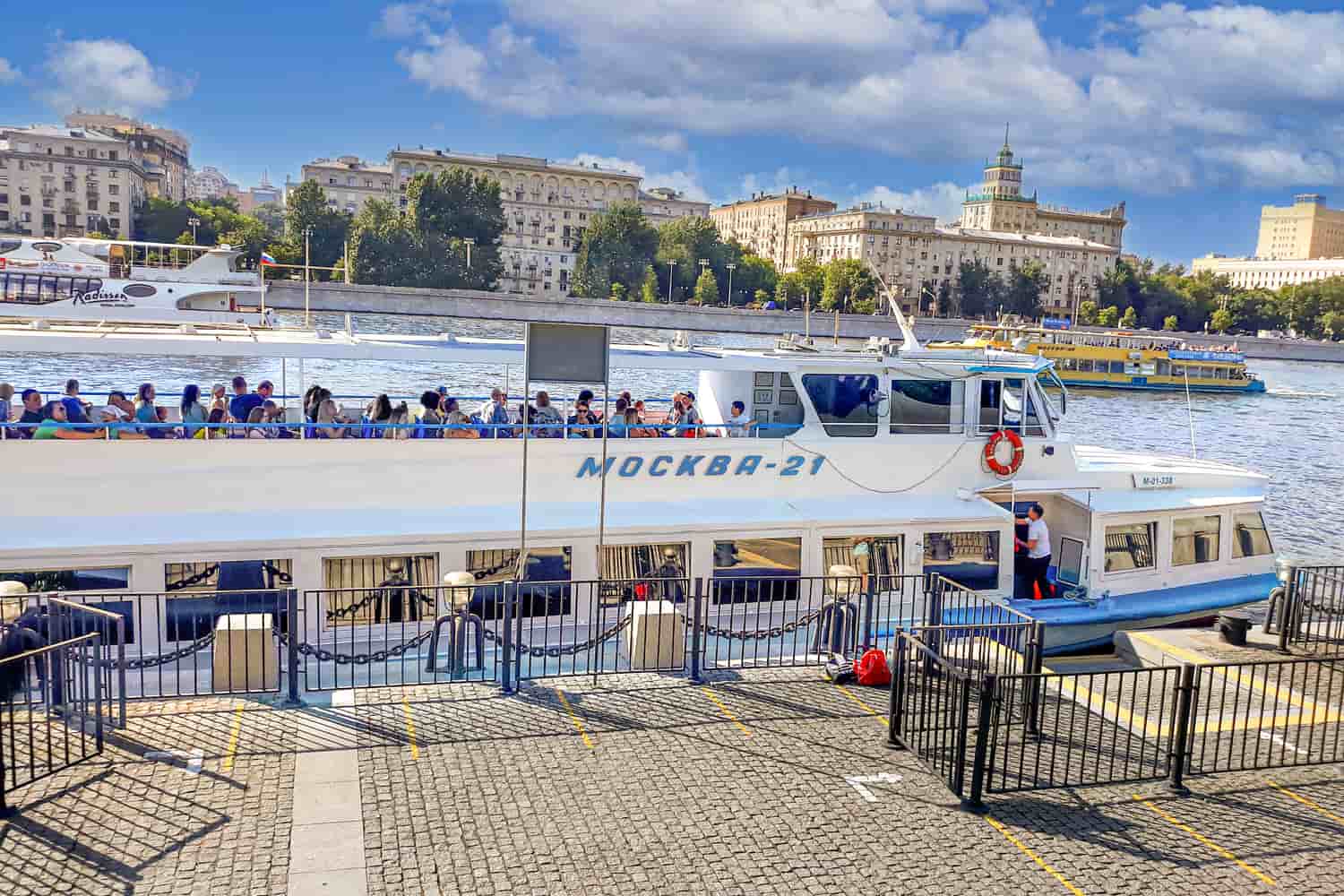 Приглашаем Вас отправиться на экскурсию на двухпалубном теплоходе по Москве-реке от причала Киевский вокзал. Прогулка составит 1 час 15 минут по маршруту вы познакомитесь с историческим наследием архитектуры столицы.