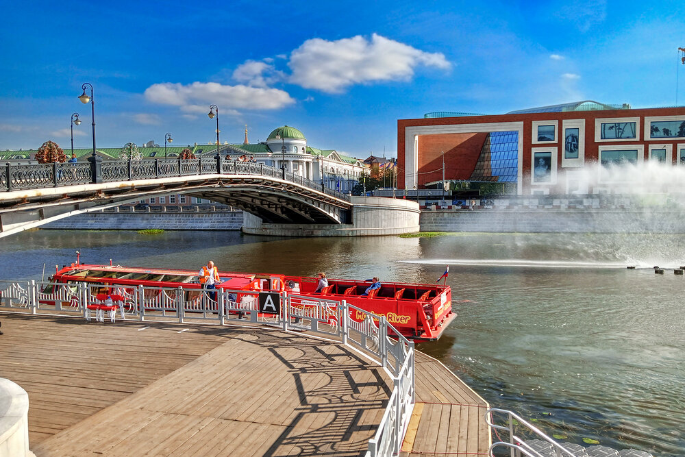 Приглашаем Вас на увлекательную речную прогулку от причала «Третьяковский», расположенного на Болотной набережной, вокруг «Золотого острова» по Водоотводному каналу. Маршрут доступен только маломерным судам способным беспрепятственно преодолевать низкие пролеты мостов. Остановки по маршруту у парка «Зарядье» и причала «Патриарший». Во время прогулки проводится экскурсия, на которой аудиогид расскажет интересные факты о столице.