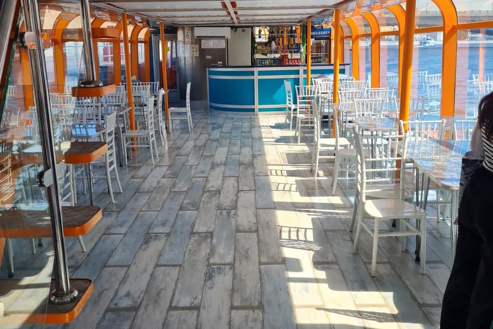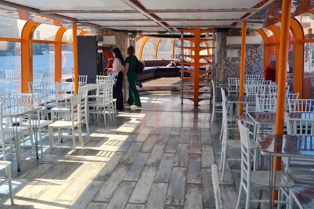 Верхняя палуба подарит свежий ветер и отличные виды, а на нижней вас ждут уют и угощения. Прогулка под звуки волны и музыки станет настоящим украшением дня для романтической встречи, семейного отдыха или неспешного путешествия с друзьями.