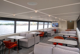 На борту электрохода предусмотрено всё для спокойного и комфортного отдыха. Гостей ждут панорамные салоны с большими обзорными окнами, удобные посадочные места, открытая палуба и ресторанная зона.