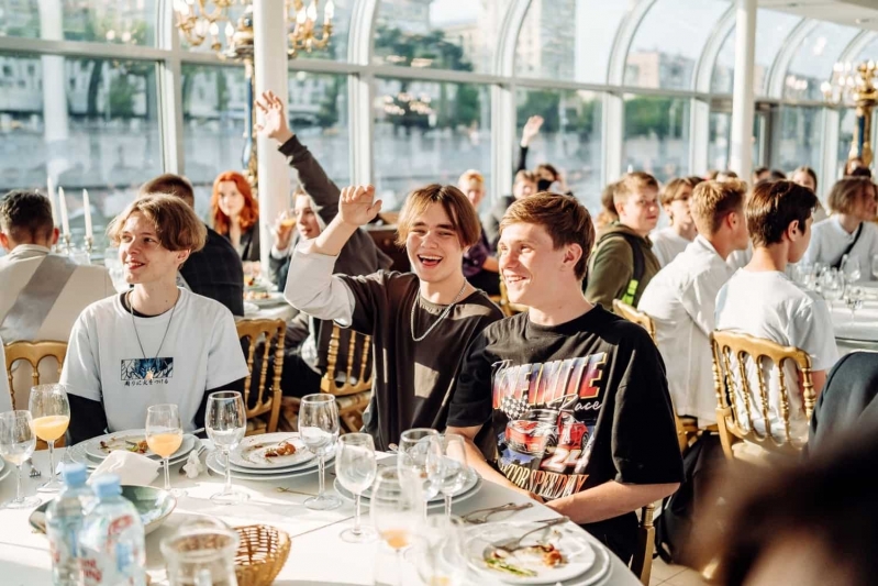 Выпускной на теплоходе удобный и красивый формат для школьников и родителей. Панорамные виды Химкинского водохранилища, организованная программа, безопасная площадка и комфорт на борту. Вечер проходит легко и комфортно.