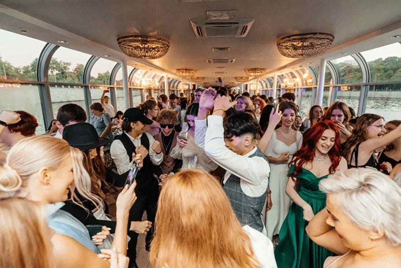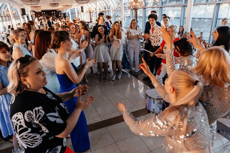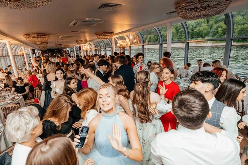 На борту судна организована интересная развлекательная программа, в которой примут участие не только сами выпускники, но и учителя и приглашенные гости. Различные конкурсы, сюрпризы и зажигательные танцы под треки от московского ди-джея — это все сделано для того, чтобы выпускной вечер на теплоходе Ривера Палас остался в памяти на долгие годы!
