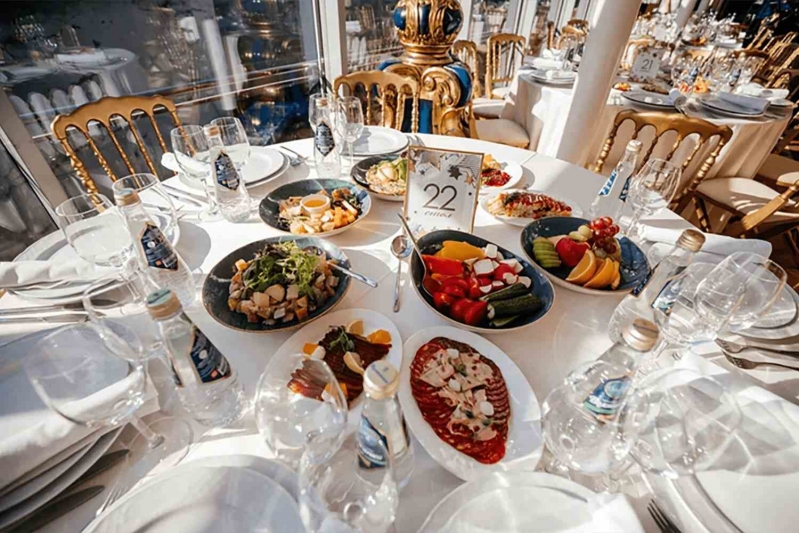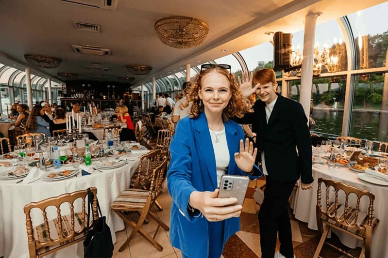 Из окон открывается восхитительный вид на Москву и ее архитектуру. На палубе вы можете прогуляться и подышать свежим речным ветерком, а также сделать памятные фотографии с друзьями.