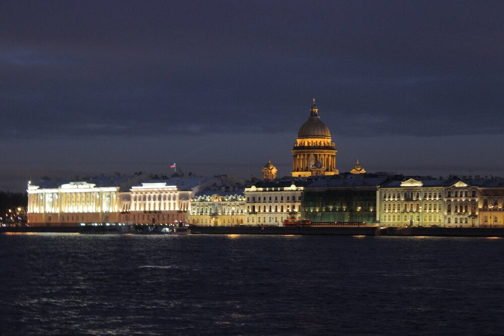 - Завораживающие виды мостовых пролетов, отражающиеся в водной глади, гранитных набережных и фасадов исторических зданий в мягком свете уличных фонарей.