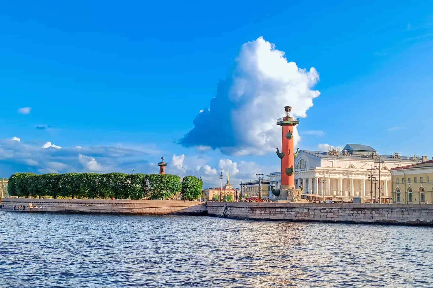 - Ростральные колонны на фоне здания Биржи – олицетворение мощи и силы морского флота РФ.