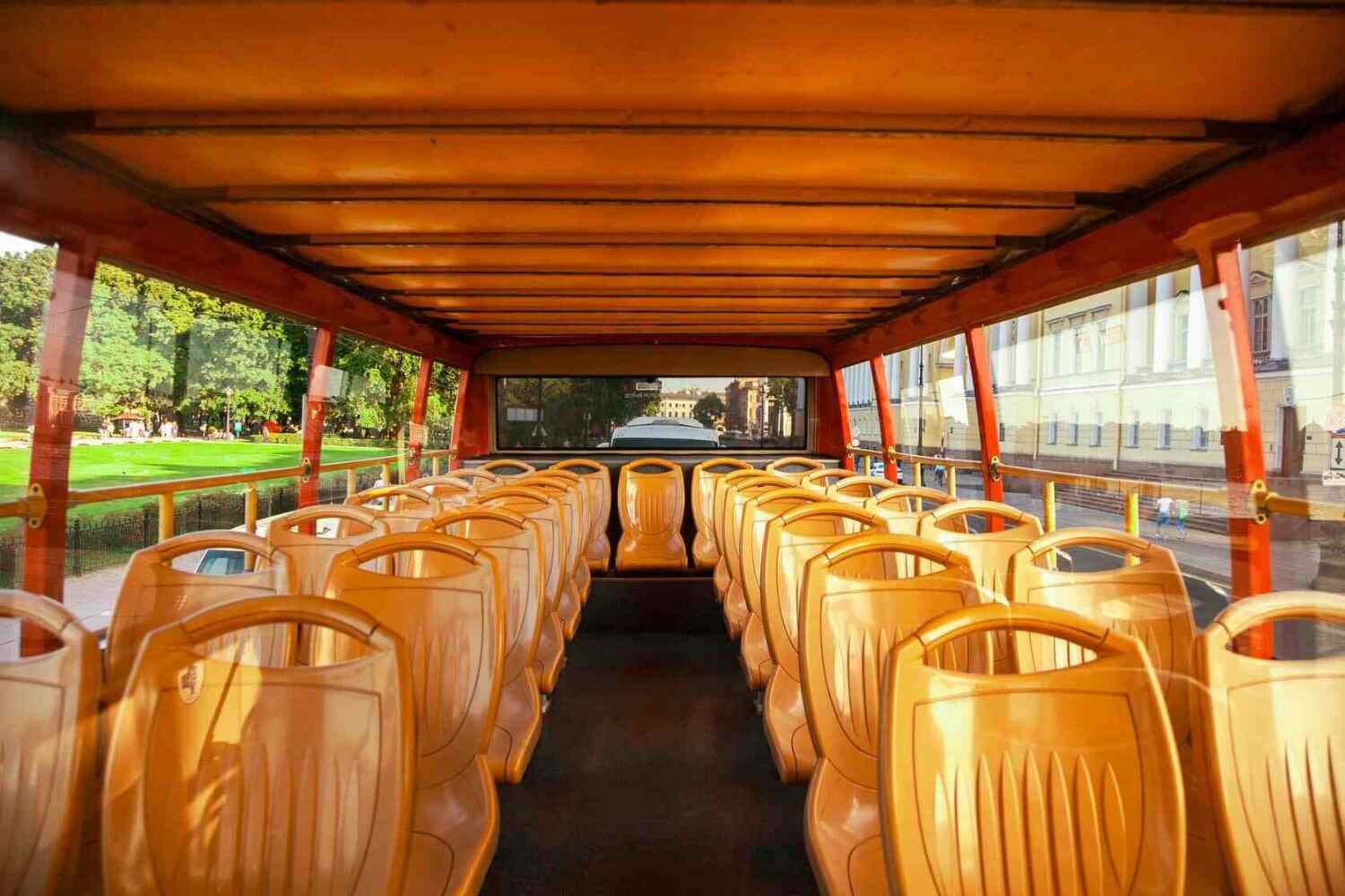 - Двухэтажный автобус очень комфортабельный, с удобными сиденьями, а со второго этажа открывается отличный панорамный обзор на окружающую обстановку.