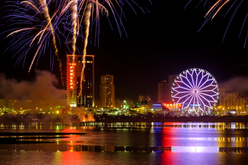 В свете ночных огней, когда городские улицы и парки украшаются яркой иллюминацией, город превращается в восточную сказку.