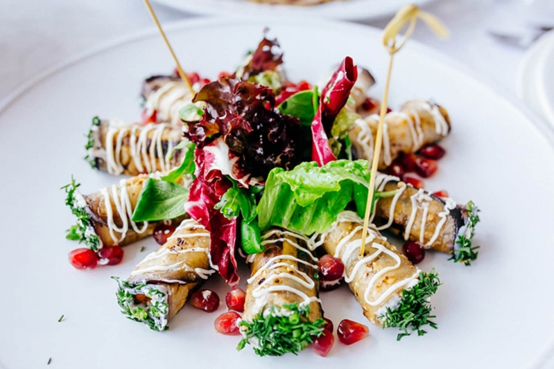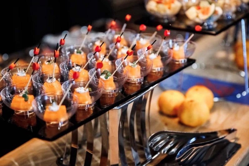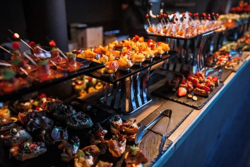 - Праздничный банкет, состоящий из холодных и горячих закусок, нарезок, горячих блюд, гарниров и десертов;