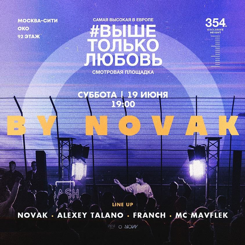 19 июня на самой высокой смотровой площадке Европы в башне «Око» Москва-Сити пройдет незабываемая SUNSET PARTY совместно с DJ NOVAK.