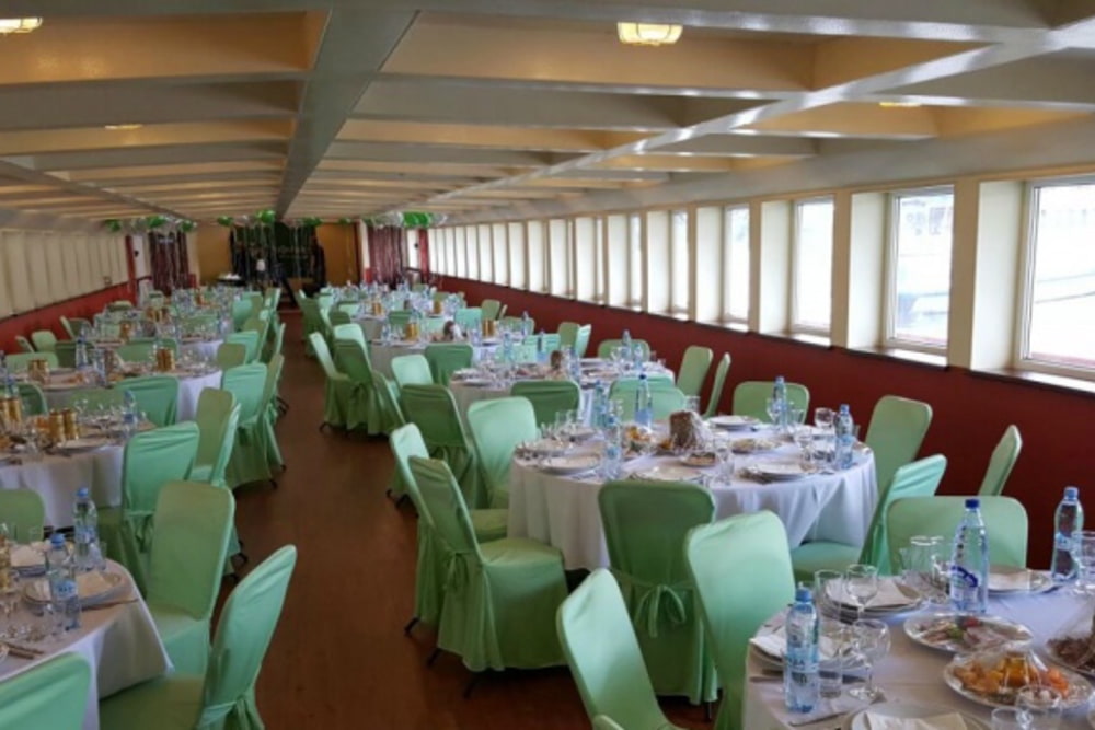 Теплоход «Ривьера» – современное двухпалубное судно, идеально подходящее для проведения банкетов, фуршетов, дискотек и экскурсий. Благодаря стильному дизайну и современному оснащению, он создаёт атмосферу уюта и комфорта, делая любое мероприятие незабываемым. Вместимость теплохода составляет до 200 человек в формате банкета и до 300 персон при фуршетах.