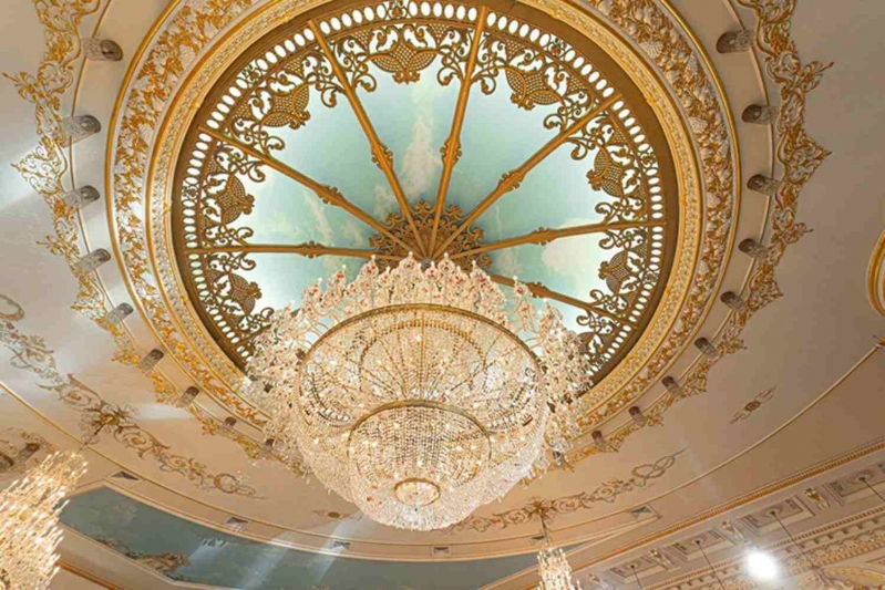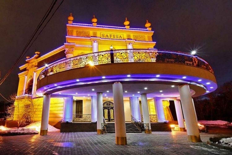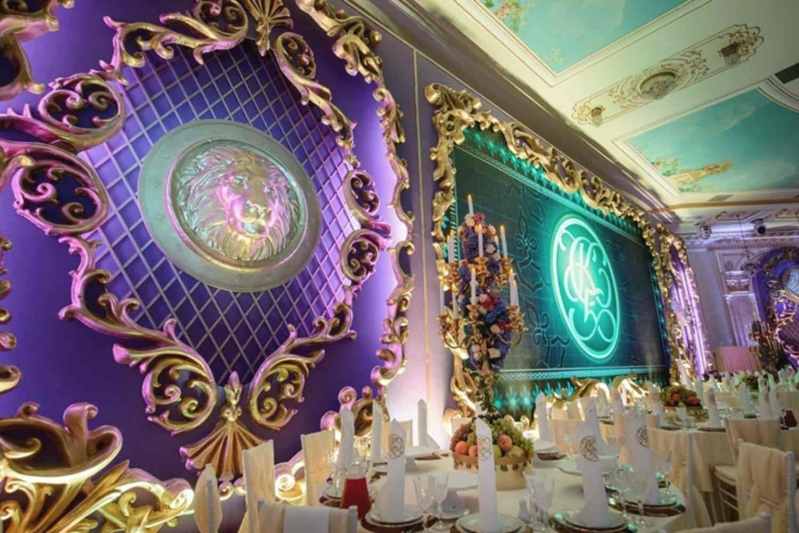 Банкетный зал Сафиса – это роскошный дворец, где каждая деталь сделана для того, чтобы гости почувствовали себя по-настоящему роскошно. Вас встречает торжественная обстановка, поистине царственный интерьер с витыми лестницами и колоннами, а также восхитительный вид, открывающийся с широкого балкона на город и Москву-сити.