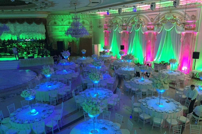 Банкетный зал оснащен большой сценой, современной аудиотехникой и световым оборудованием, благодаря чему выступление артистов на этой площадке становится действительно грандиозным и захватывающим!