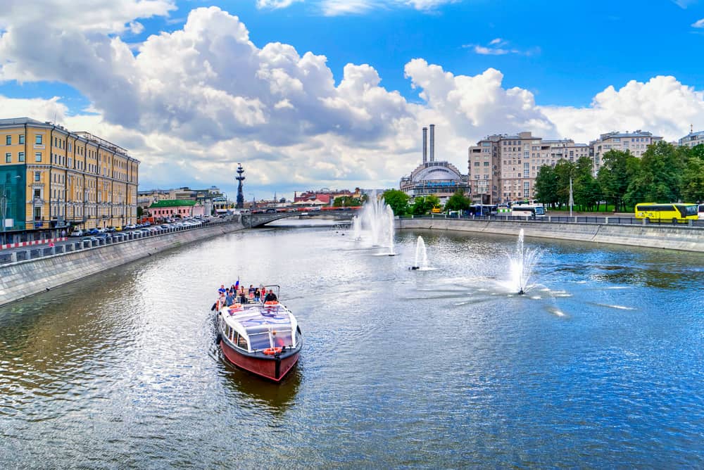 Выбрав теплохода от причала «Третьяковский» по маршруту, вы полюбуетесь водной феерией 16 плавающих фонтанов, Парящим мостом, новым ландшафтным парком Зарядье и самыми известными достопримечательностями столицы: златоглавым Храмом Христа Спасителя, Собором Покрова на Рву (храм Василия Блаженного), Московским Кремлем, грандиозным памятником Петру I, Домом Музыки и многими другими.