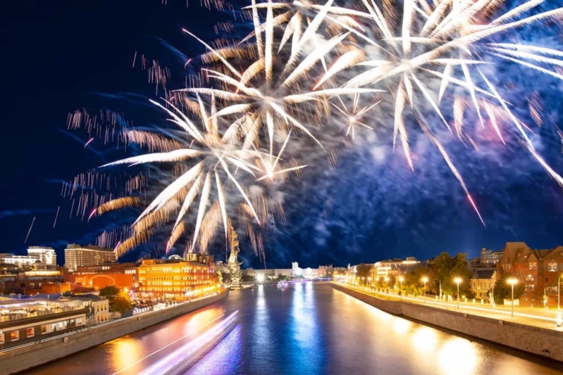Кульминацией вечера станет великолепный праздничный салют. Представьте, как красочные огни озаряют ночное небо над Москвой, отражаясь в водах реки и создавая двойную красоту. Это зрелище невозможно забыть, и вы сможете наблюдать его в самых лучших условиях.