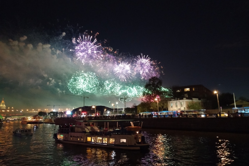 Наш теплоход предоставляет уникальную возможность увидеть праздничный салют с воды, открывая вам потрясающие панорамы московских достопримечательностей. Насладитесь красотой огней, отражающихся в водах Москвы-реки, и увидьте в новом свете Кремль, Храм Христа Спасителя, Большой Каменный мост и другие знаковые здания столицы.