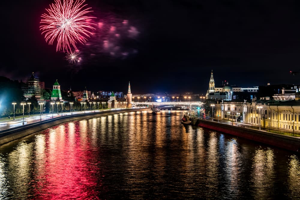 Салют 9 мая в честь 80-летия Дня Победы с теплохода «Соболь»