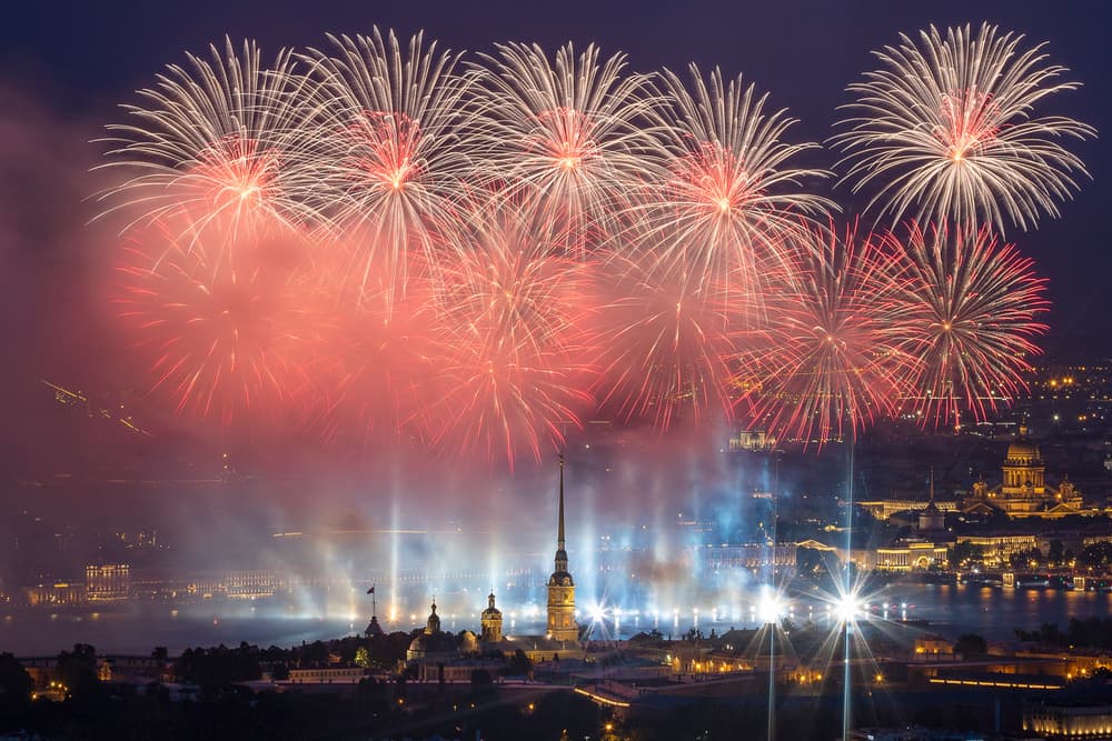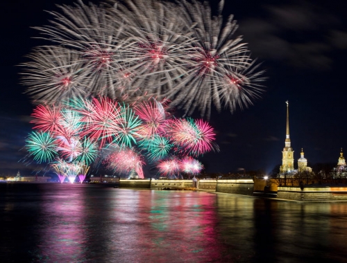 Традиционный салют в честь Победы в Великой Отечественной Войне запускается с территории Петропавловской крепости. Прогулка по Неве позволяет стать частью официальных торжеств, наблюдая огни салюта с воды.