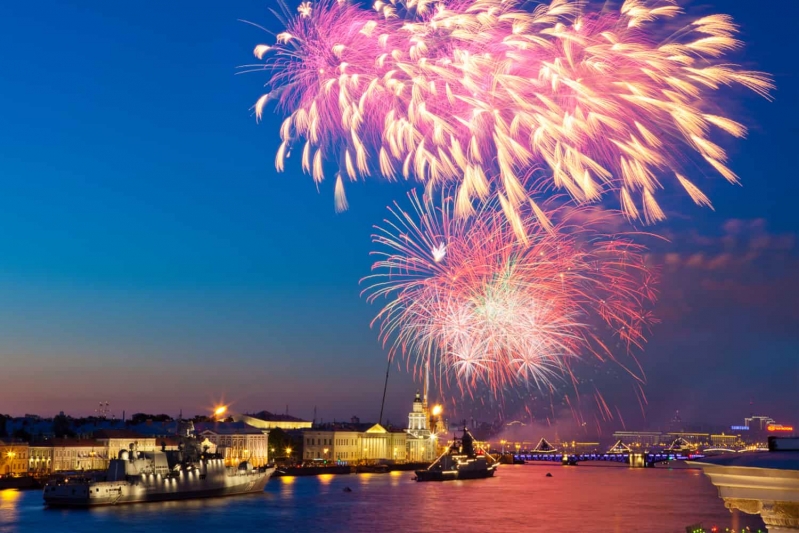 Прогулка на теплоходе с просмотром салюта на День Военно-Морского Флота России – это грандиозное зрелище завершающее парад военных кораблей в Санкт-Петербурге.