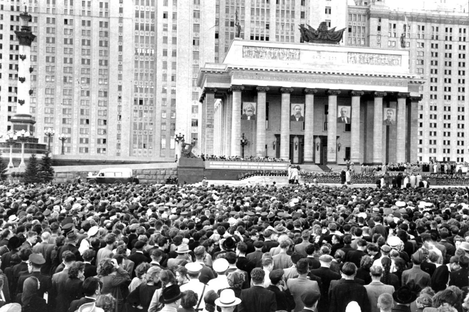 Торжественное открытие здания Университета состоялось в 1953 г. и назван он был в честь М.В. Ломоносова. Параллельно было окончено строительство ботанического сада, спорткомплексов, бассейна и прудов, где разводили редкие сорта рыб.
