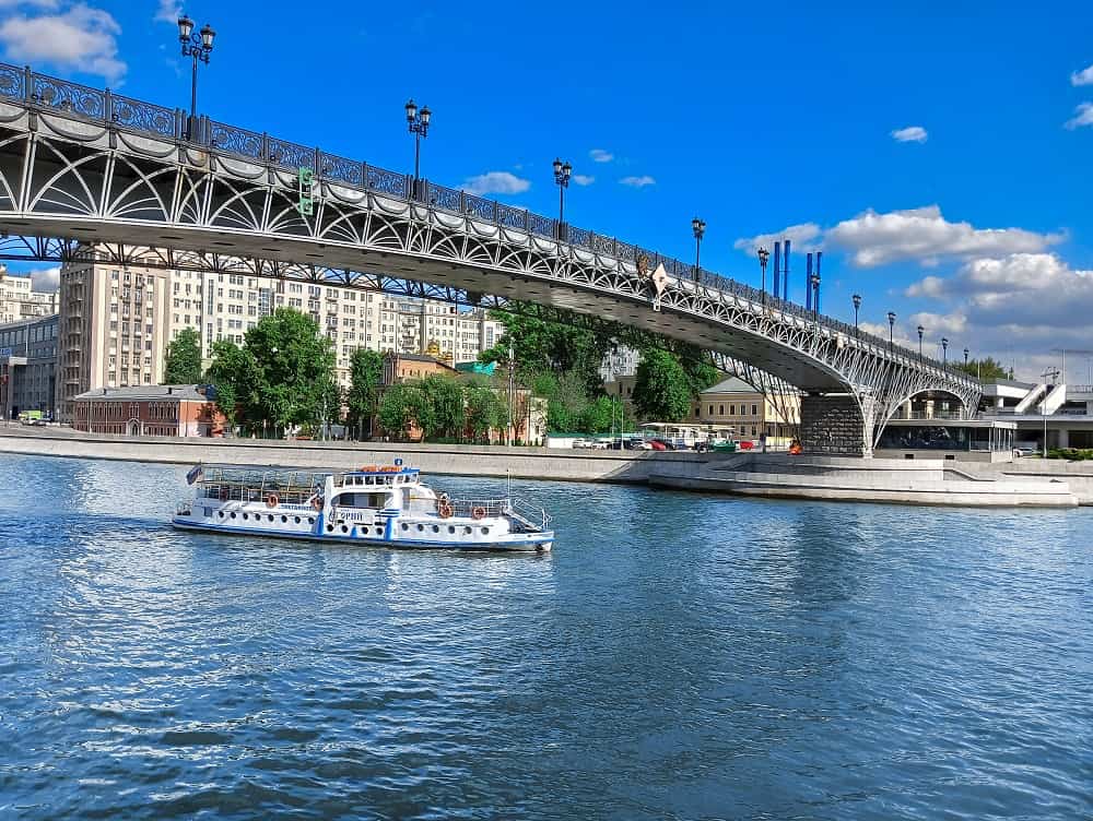 Патриарший мост заслуженно считается одним из самых впечатляющих в столице России. Конструкция объединяет знаменитый Храм Христа Спасителя с Берсеневской и Якиманской набережной.