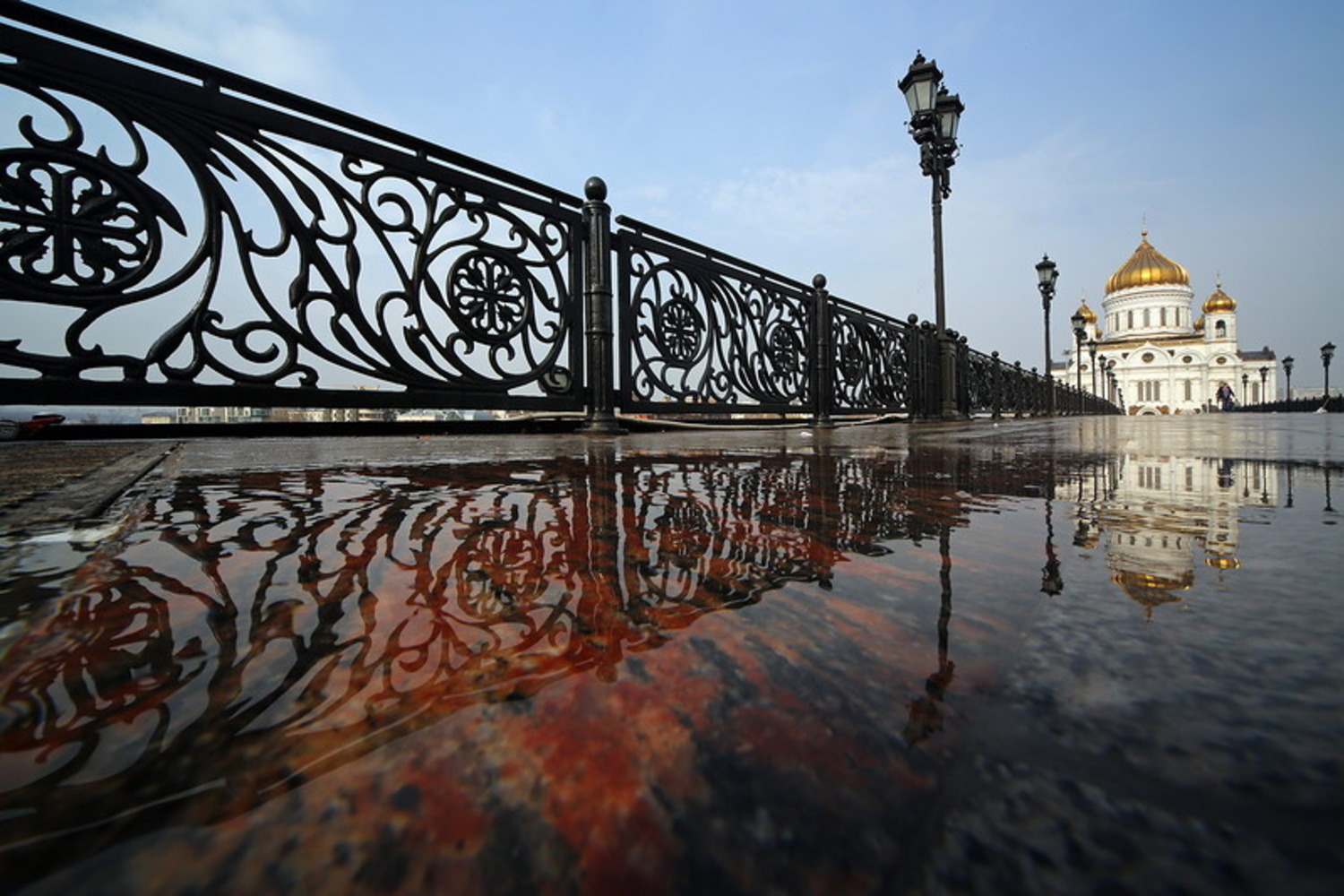 Идти к Храму Христа Спасителя, пройти его и двигаться к реке.