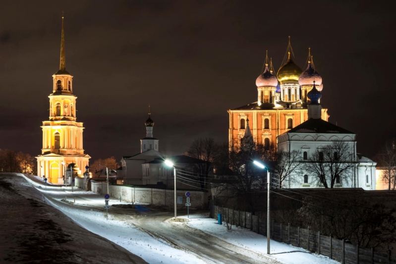 Успенский Собор – хорошо узнаваемый символ Рязани, выглядит поистине сказочно в сиянии новогодних огней.