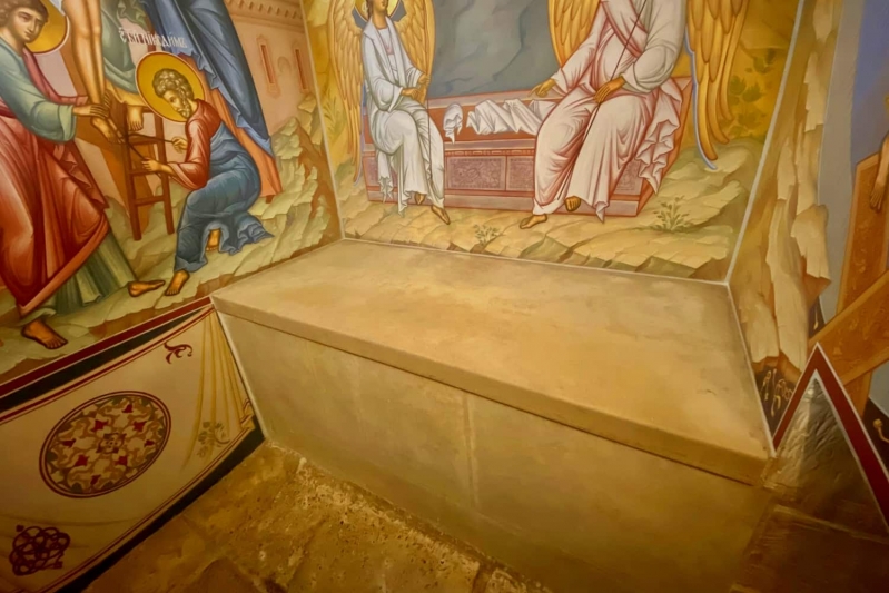 - Экскурсия в храм равноапостольных Константина и Елены. Храм углублен на 6 метров, напоминая о месте обретения Креста Господня. Посетителей ждет Живоносный источник, к которому ведут 33 ступени.